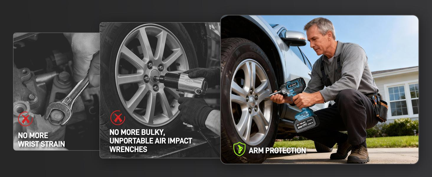 【2*4.0Ah Battery】With two 21V 4.0Ah batteries, the Geveelife 1/2" cordless impact gun offers extended battery life and longer usage time. Its wireless design allows for convenient use without the restrictions of cords. You can enjoy up to 160 minutes of continuous operation on a single full charge.